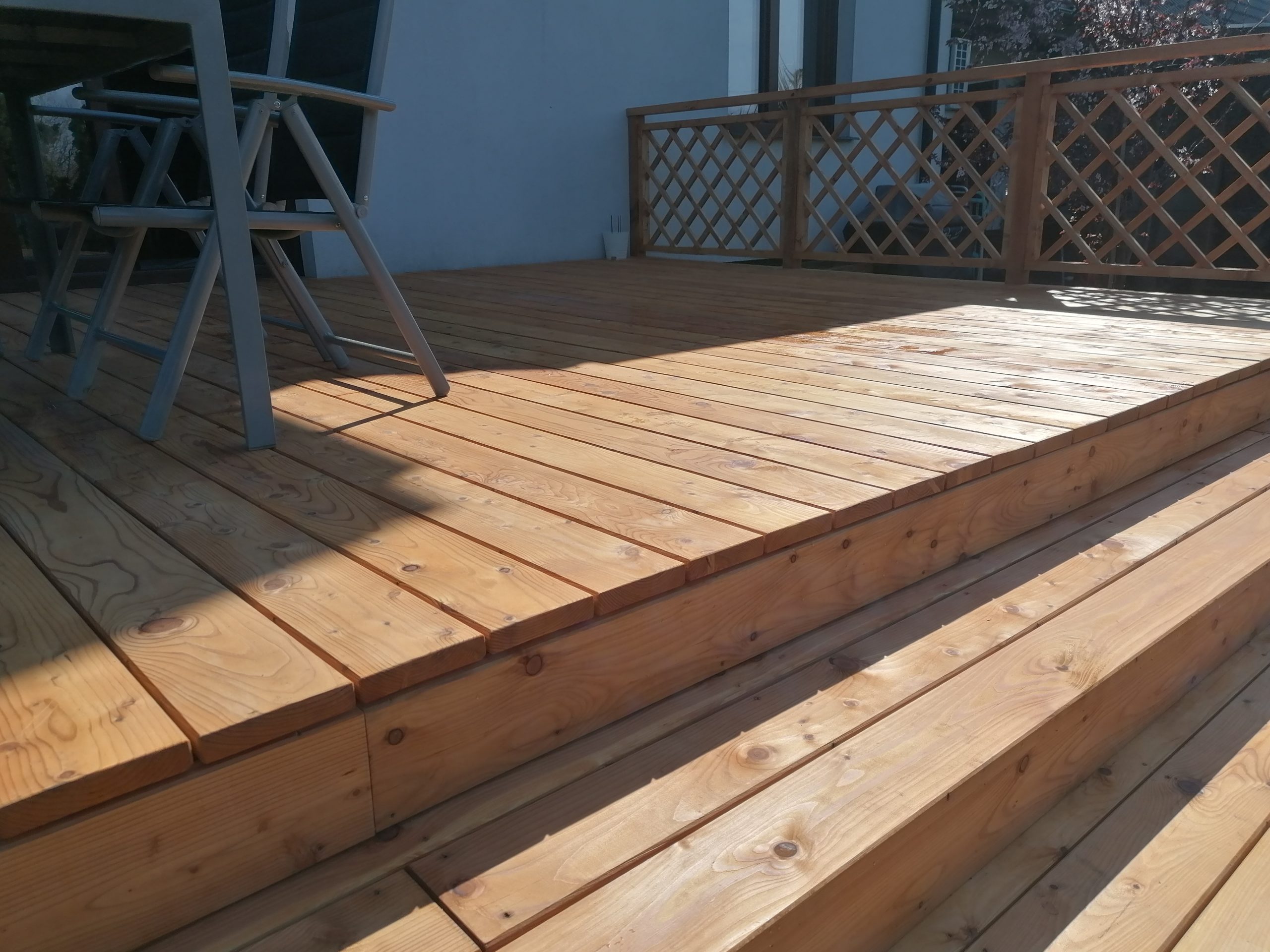 Olejowanie desek na kolor złoty miodowy nadaje tarasowi ciepły i przytulny wygląd, który pasuje do różnego rodzaju otoczenia. Kolor ten doskonale komponuje się z zielenią roślin oraz innymi elementami małej architektury na tarasie.