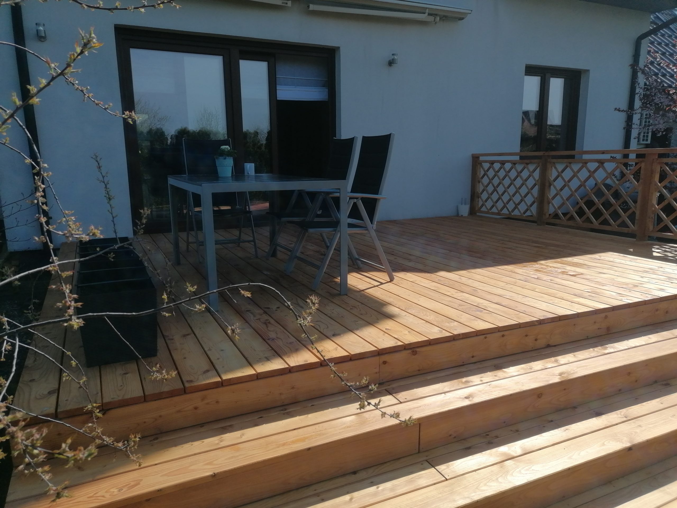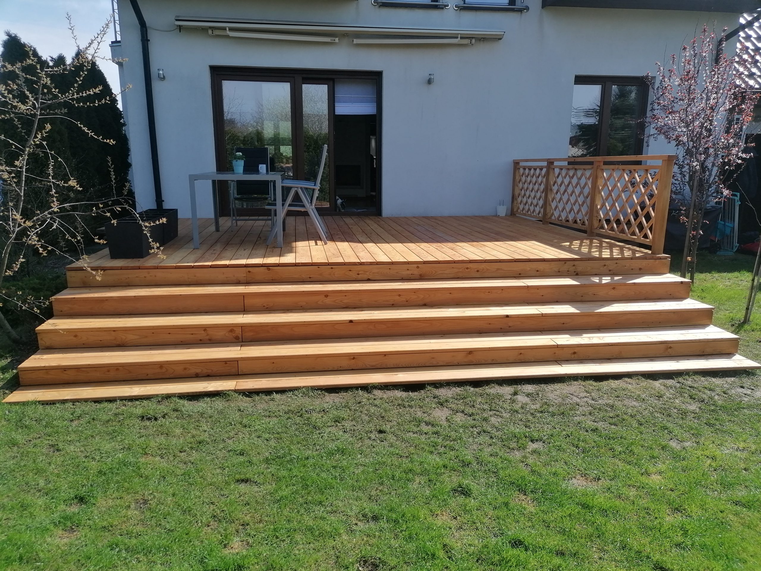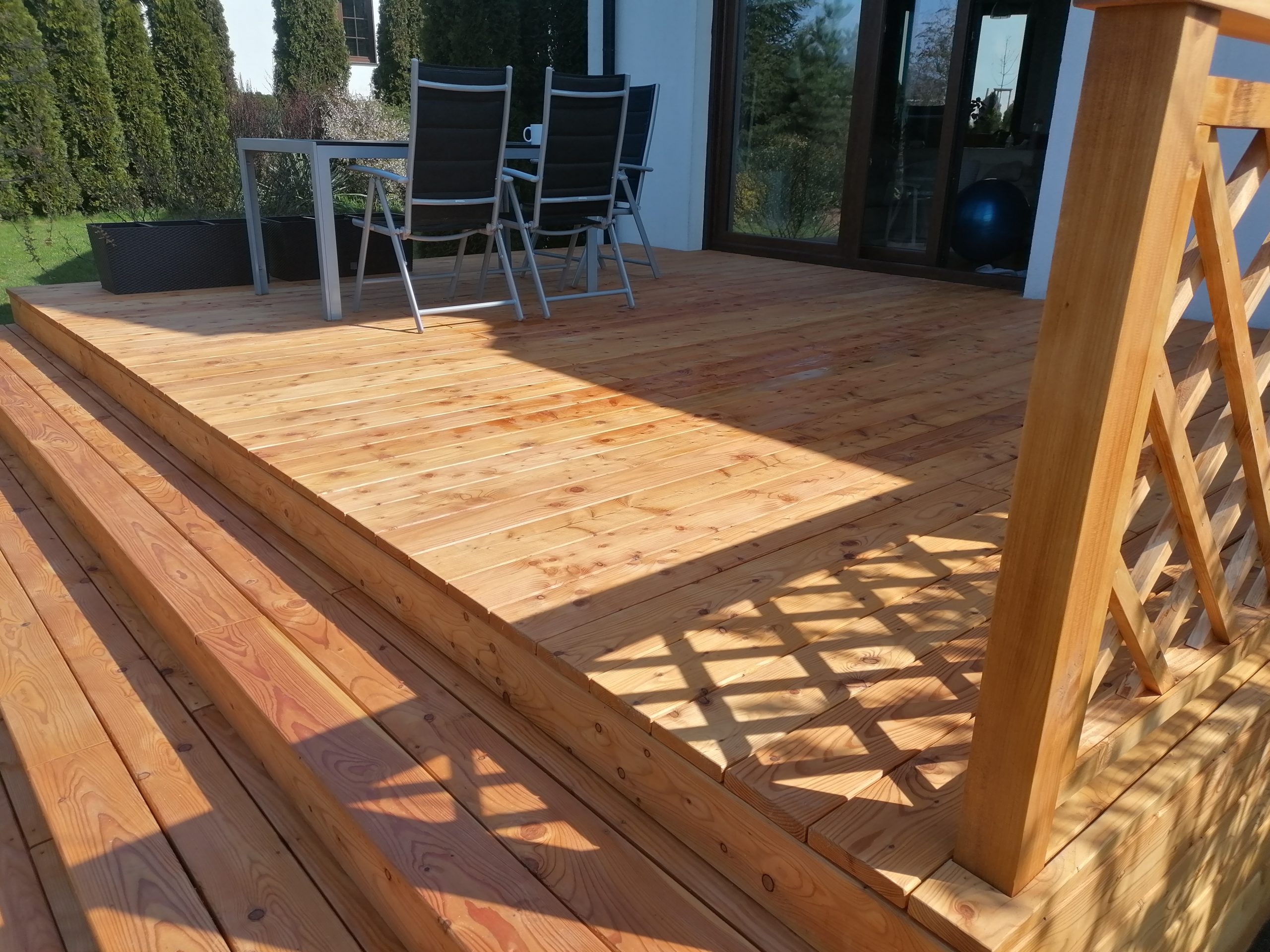 Balustrada, która została zamontowana na tarasie, pasuje idealnie do całości. Dzięki solidnej konstrukcj, taras jest bezpieczny dla użytkowników, a jednocześnie wygląda bardzo estetycznie