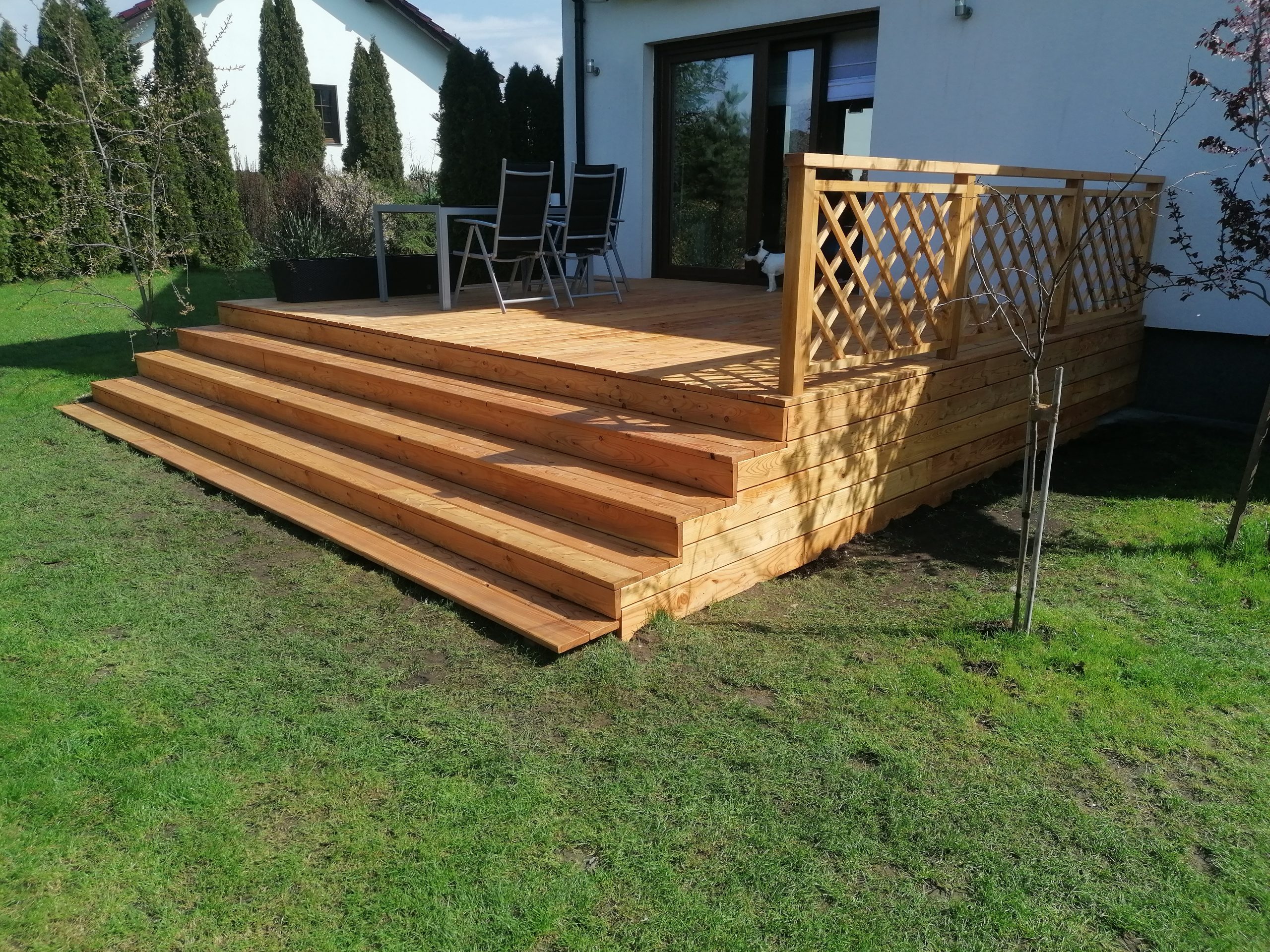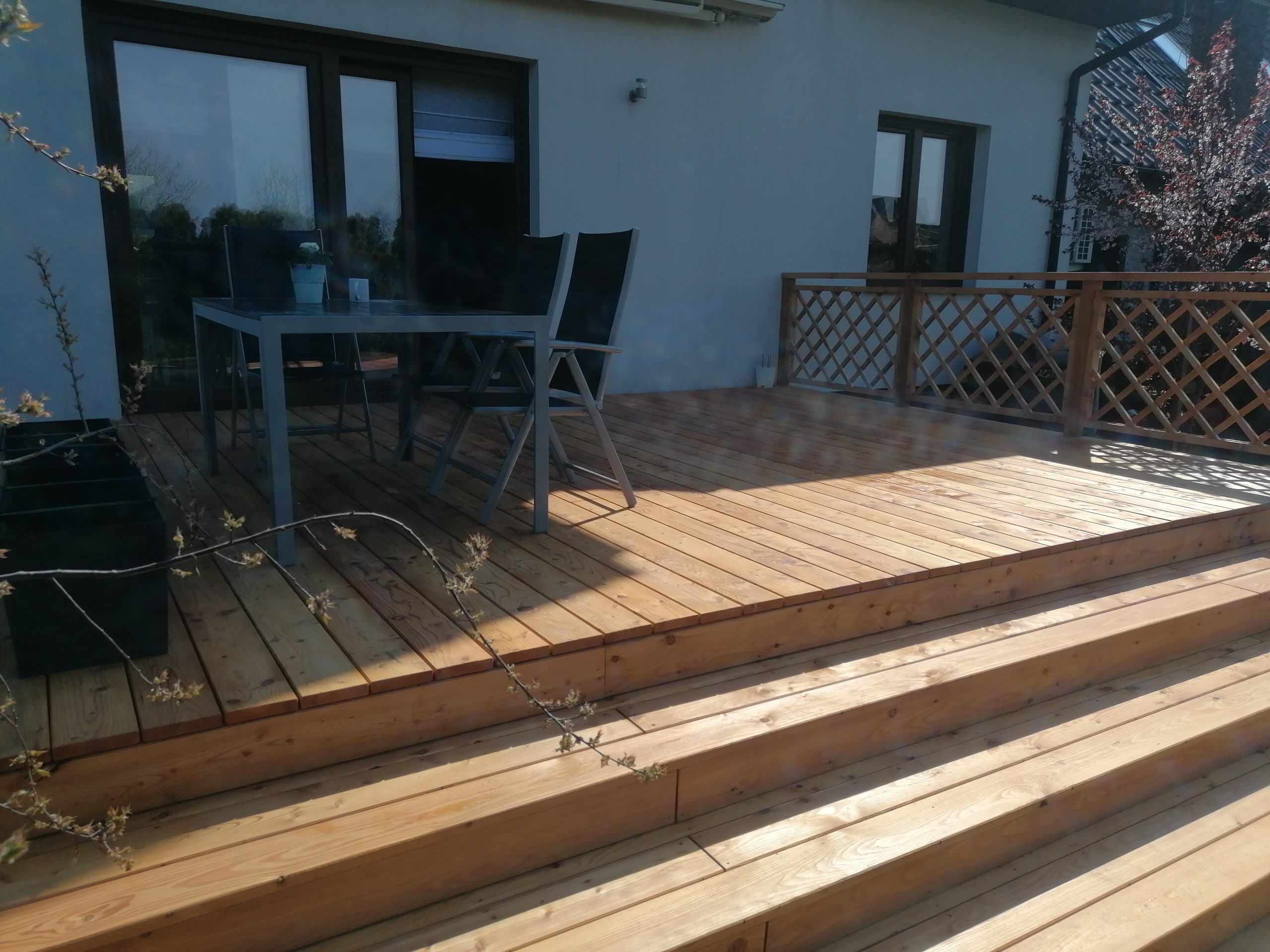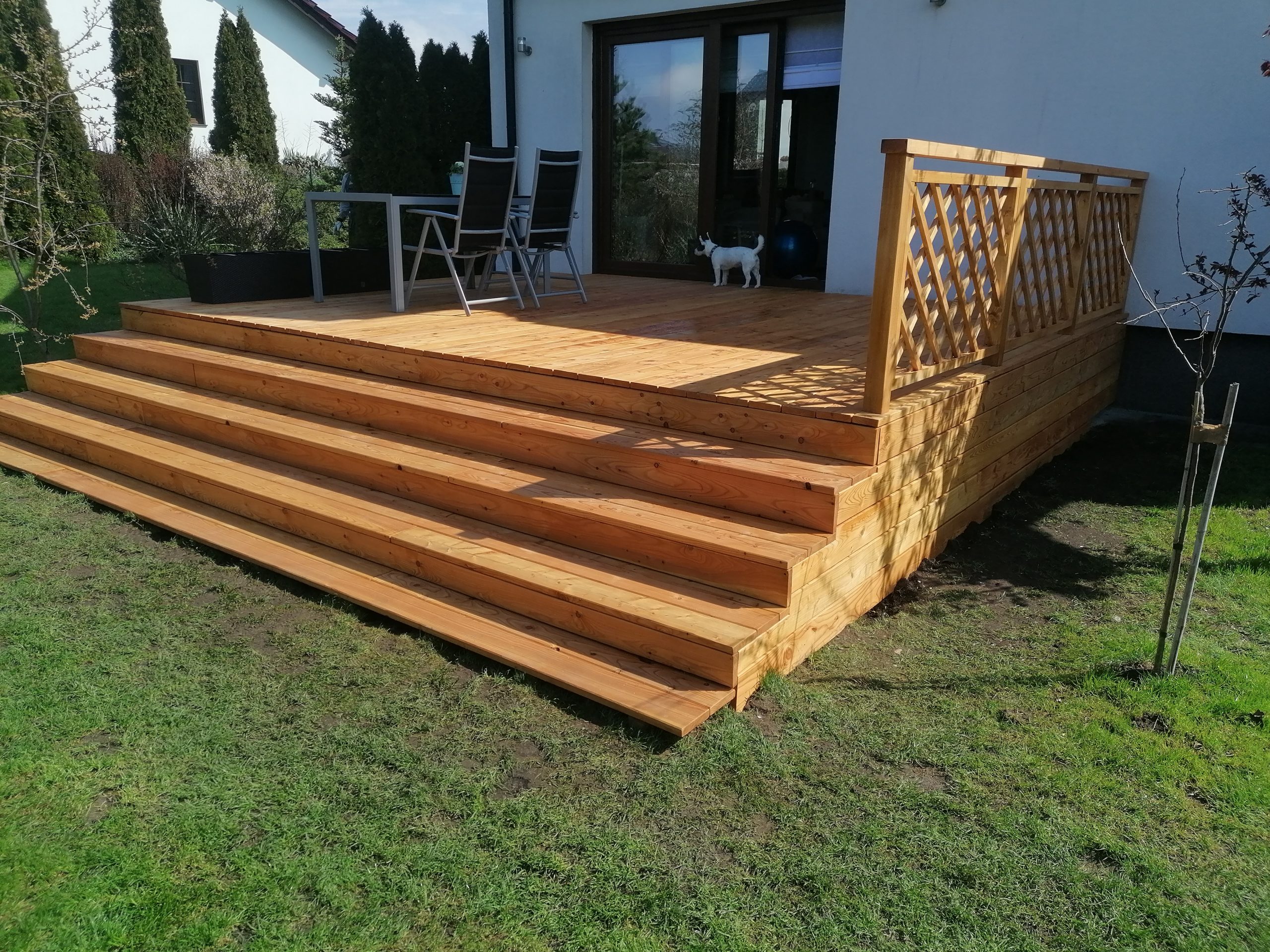 Balustrada, która została zamontowana na tarasie, pasuje idealnie do całości. Dzięki solidnej konstrukcj, taras jest bezpieczny dla użytkowników, a jednocześnie wygląda bardzo estetycznie