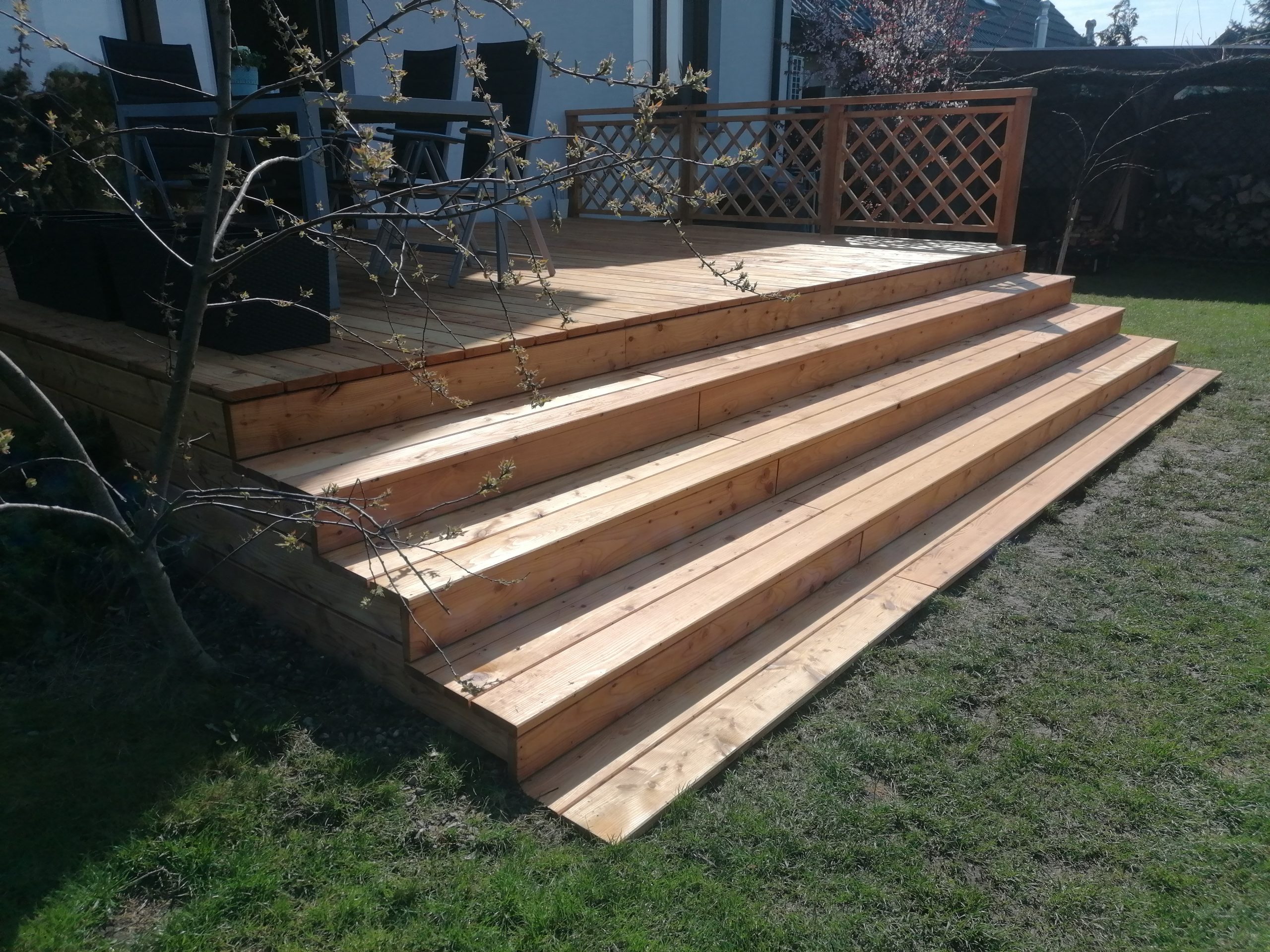 Taras z deski modrzewiowej z ukrytym bocznym montażem to eleganckie i trwałe rozwiązanie do użytku na zewnątrz. Deski wykonane z modrzewia są odporne na warunki atmosferyczne, co sprawia, że taras będzie prezentował się pięknie przez wiele lat.